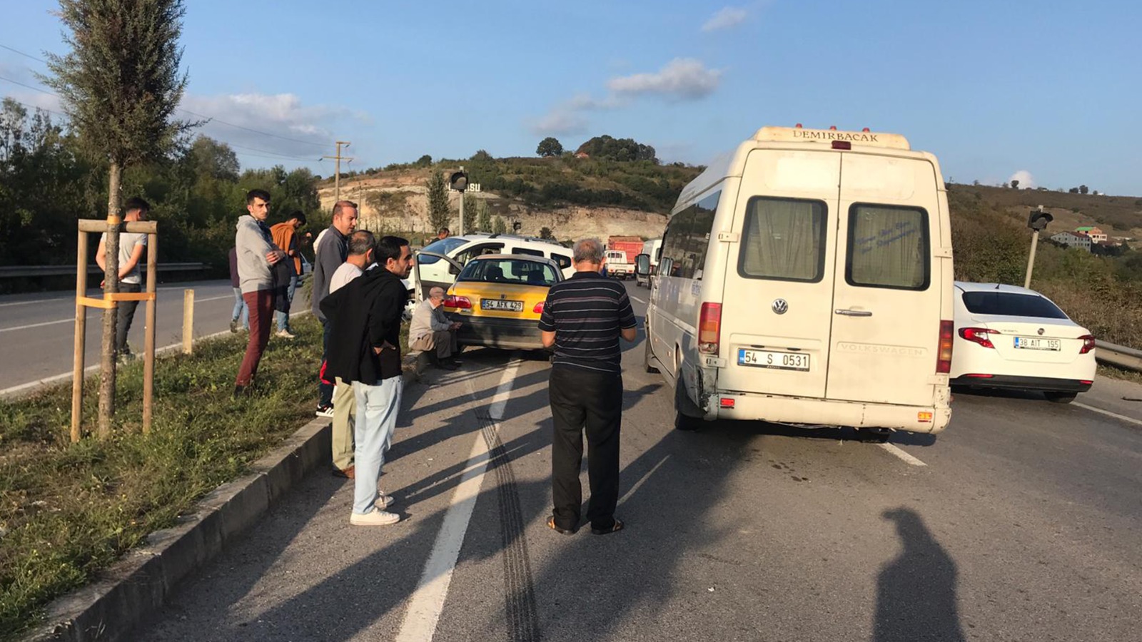 Servis minibüsünün panelvan hafif ticari araca vurduğu, sonrasında ise sol şeritten sağa kaçarken arkadan gelen otomobil ise ona vurmamak için manevra yaptığı görülürken oda orta refüje çıkan araca vurarak durdu.