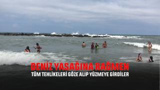 Karasu'da deniz yasaklarını aldır etmeden yüzdüler.