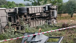 Pamukova'da öğrencileri taşıyan tur otobüsü kaza yaptı.