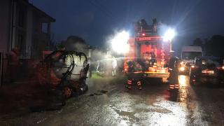 Karasu'da akülü araç bomba gibi patladı.